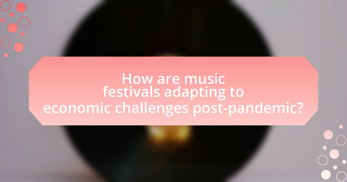 Music festivals are adapting to economic challenges post-pandemic by implementing cost-cutting measures, diversifying revenue streams, and enhancing audience engagement. Many festivals have reduced operational costs by negotiating better deals with vendors and suppliers, while others are exploring hybrid models that combine in-person and virtual experiences to reach a broader audience. For instance, festivals like Coachella have introduced live streaming options, allowing them to generate additional income from online ticket sales. Additionally, festivals are focusing on local talent and partnerships to minimize travel expenses and support community economies, which has been shown to foster stronger local attendance and loyalty.